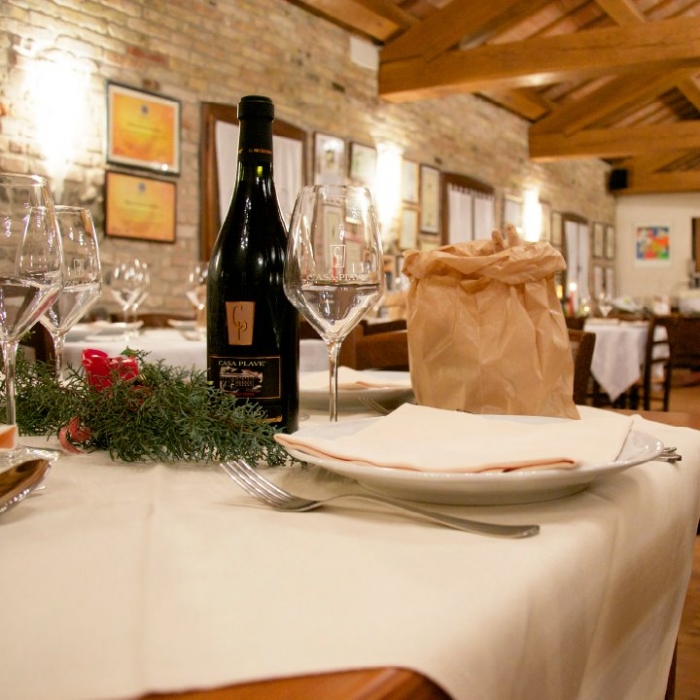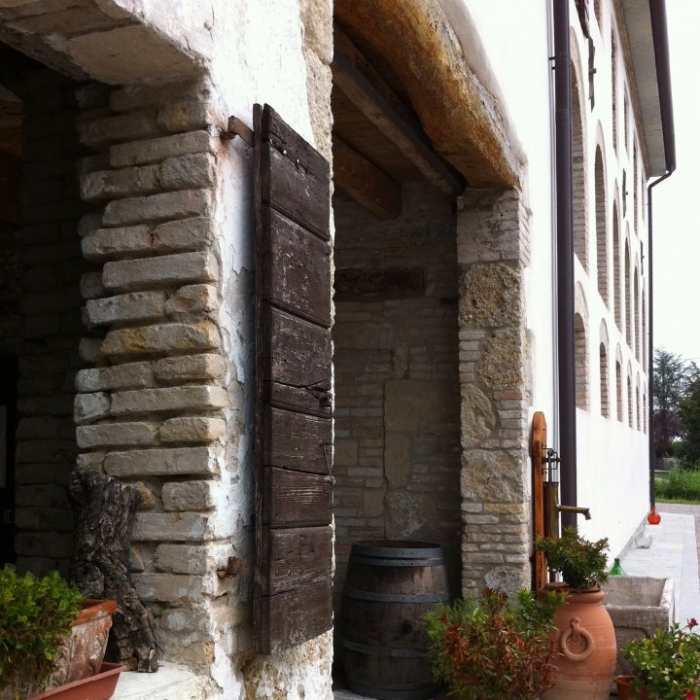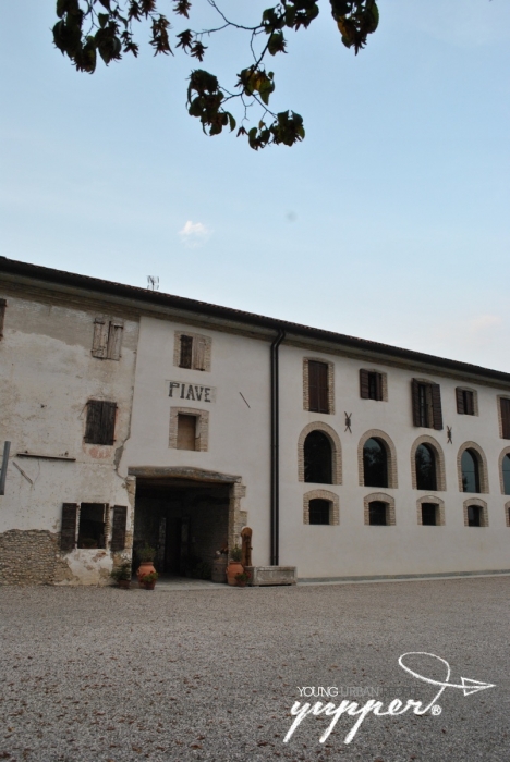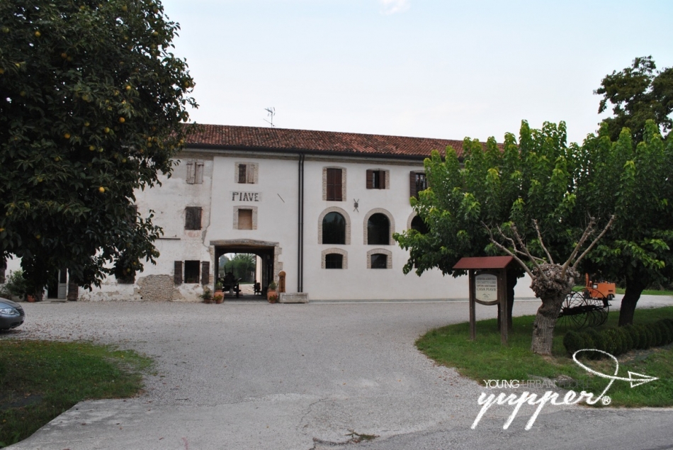 Immersa nella campagna e nella natura, la grande casa colonica che ospita Casa Plave si riconosce subito: un casolare di campagna che riporta sulla facciata la scritta con il suo nome originale “Piave”, il fiume che un tempo, prima di essere convogliato dentro gli attuali argini, correva libero nella pianura. La struttura anticamente era un casone di agricoltori mezzadri ampliato nell’ottocento mantenendo le pareti in sasso. Oggi ospita al piano inferiore la cantina, che si può ammirare attraverso le vetrate, e la sala per gli eventi al piano superiore con il soffitto in travi di legno a vista, un caldo arredamento in legno e un moderno bancone per la degustazione di vini e cocktail.