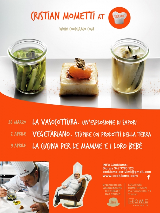 Ripartono i corsi di cucina con una vera star dietro i fornelli e in cattedra. La nuova edizione di COOKinamo è tenuta dallo chef Cristian Mometti, cuoco dell’anno italiano nel 2009, autore del libro Vasocottura, Best First Book in Italy nel 2011. Da mercoledì 26 marzo per 3 mercoledì di fila, dalle 20 alle 22.30, sarà possibile imparare divertendosi, acquisire nuove tecniche di cucina, stupire e socializzare.