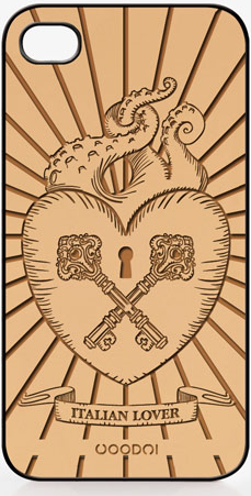 Tre sono le linee di prodotto di Woodmi (vai al sito) che comprendono cover, skin e custodie realizzate con materiali naturali: legno, pietra (ardesia) e pelle. Sono lamine ultra sottili, perciò leggere, flessibili e resistenti. I materiali naturali, vivi e tattili riescono a regalare una sensazione avvolgente, capace di confondere e di stimolare tutti i nostri sensi. Elena Borghi si è cimentata con il legno di ciliegio realizzando i disegni delle cover della collezione “The Italian Lover” che pone l’accento sul maschio italiano, grande amatore, capace di aprire anche i cuori più ostinatamente chiusi. Woodmi vuole offrire un’icona capace di rappresentare l’essenza fashion victim in chiave ironica, da portare sempre con se, sul proprio iPhone.