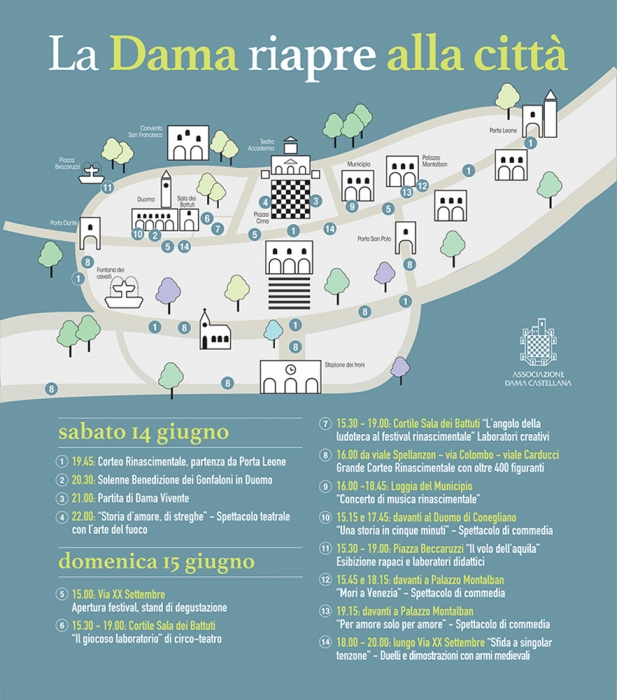 La Dama Castellana festeggia 30 anni e ripercorre le vicende più importanti che hanno segnato la storia della città di Conegliano dalla fondazione ai giorni nostri: l’origine del nome, la decisione di fortificare il borgo, la battaglia tra Trevisani e Conegliano (che è anche all’origine dello spettacolo della dama vivente), la conquista di Napoleone, la fondazione della Scuola Enologica... La Dama castellana a Conegliano sarà di scena sabato 14 e domenica 15 giugno proponendo la memoria del luogo e soprattutto delle persone che lo abitano.