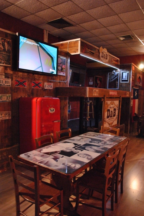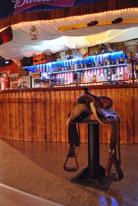 Lo stile del D&B richiama l’epopea del west con un bancone degno di un saloon, selle al posto degli sgabelli e numerosi oggetti indiani e da cowboy appesi alle pareti.