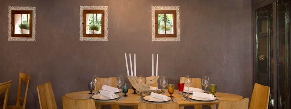 Donna Lucia è una residenza nobiliare che si veste di design d’autore utilizzando legno di rovere e legno di recupero tratto dalle “bricole” veneziane, quasi a ricordare il legame secolare che unisce la città di Treviso alla Serenissima. Ma anche il motore di un “Ciao” e le catene di una bicicletta per creare un lampadario che richiama lo stile Liberty; un cavallo di legno che diventa tavolo per intime cene a quattro o due, icone della musica come Mina ed Hendrix sulle pareti, cornici trompe-l’oeil disegnate con gesso bianco a mano libera direttamente sul muro, belle e cancellabili. La creatività di Gino Giacomin, artigiano-artista con atelier nel centro storico di Treviso, si è espressa con tutta la sua vitalità per dare un’atmosfera unica al Resort ristorante Donna Lucia.