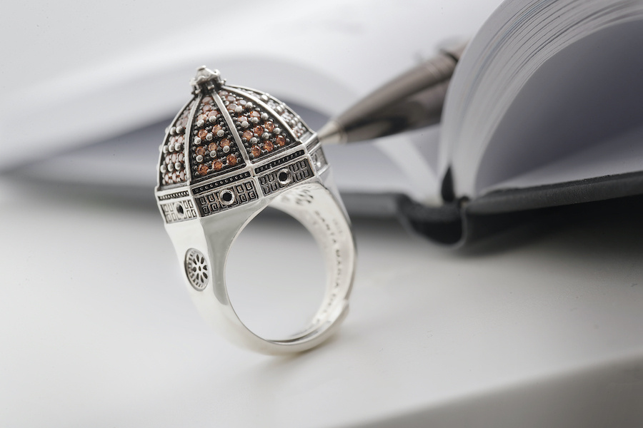 All’interno di Palazzo Bovara, i visitatori potranno osservare da vicino due delle creazioni appartenenti a questa collezione: l’anello cupola del Brunelleschi e la collana Santa Maria della Sanità di Napoli. Quest’ultima, una piccola opera d’arte lavorata a mano, riprende lo splendore delle maioliche settecentesche gialle e verdi che caratterizzano la cupola della basilica Partenopea. Il ciondolo, da indossare ogni giorno, risplende grazie all’utilizzo di pietre colorate. Riproduzione dettagliata del Duomo di Firenze è, invece, l’anello cupola del Brunelleschi. Maestoso, elegante ed originale, questo anello, realizzato in argento 925, permette a chi lo indossa di rievocare la bellezza del periodo rinascimentale.