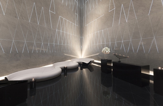 Situato al primo piano del ME Hotel di Londra (vai al sito), il locale si caratterizza per il gigantismo, le linee essenziali e il contrasto dei colori. Nell'Atrium Champagne Bar gli elementi d’arredo sono ridotti al minimo, progettati su misura da Norman Foster e completati da alcune sedute di Walter Knoll. Nello spazio si stagliano una lunga panca curva di 30 metri, eleganti banchi reception neri e il bancone triangolare dello champagne bar. Un po’ Odissea nello spazio, un po’ cattedrale post-moderna.