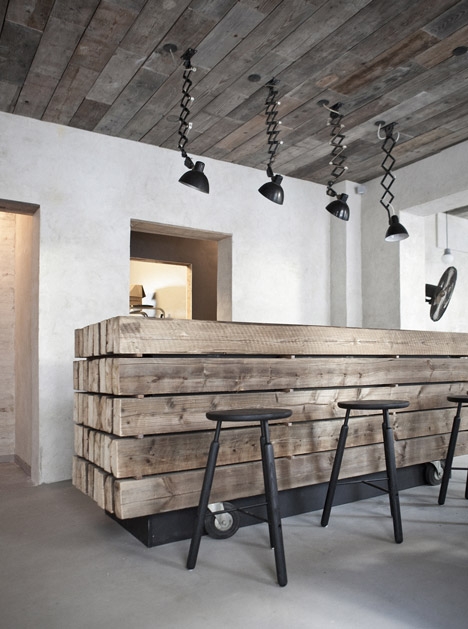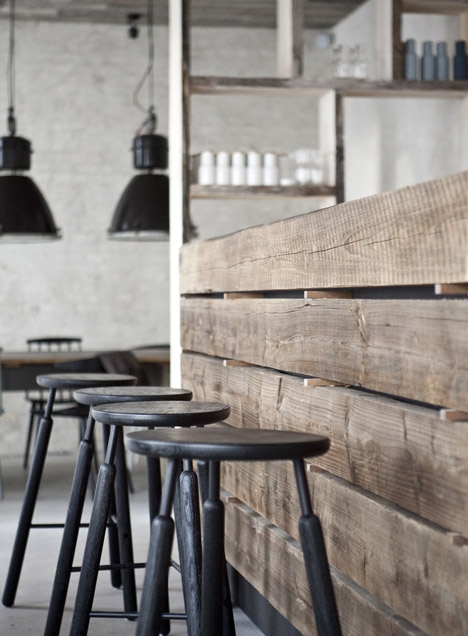 Gli arredi sono stati creati con materiali di recupero, che erano stati esposti alle intemperie, come assi di legno riciclati, pallet e finestre prese da un vecchio ospedale che si affacciano su un delizioso giardino d’inverno. Alle pareti sono appesi taglieri di legno, lampade d’epoca e per le sedute sono state usate sedie a schienale alto. I designer hanno, inoltre, creato una collezione di articoli per la tavola esclusivamente per il ristorante Host, che comprende piatti e stoviglie di base bianchi, accanto a pezzi blu e grigio e a lastre di granito. L’Höst restaurant propone una cucina definita New Nordic Cuisine. Qui potete vedere il menù (in danese).
