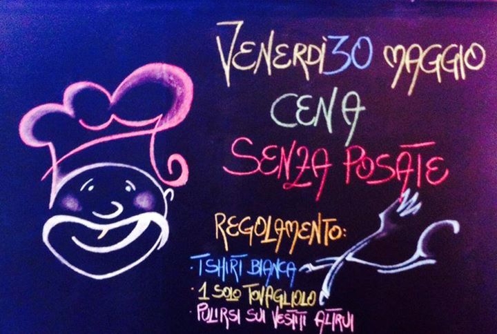 Se la mamma ti ha sempre imposto di pulirti per bene la bocca col tovagliolo, di non appoggiare i gomiti sul tavolo e soprattutto di stare attento a non macchiarti i vestiti è arrivata finalmente la tua rivincita liberatoria. Dimentica tutto quello che hai imparato a forza sul bon ton e vieni alla cena più divertente e unta che ci sia venerdì 30 maggio all’Osteria La Panza. Per partecipare basta indossare una t-shirt bianca. Non ci saranno posate per mangiare i piatti che verranno serviti e ci sarà un solo tovagliolo per tutti. Per pulirsi si dovranno utilizzare le magliette degli altri commensali. All’Osteria La Panza (vai alla pagina Facebook) più ci si sporca, più ci si diverte.