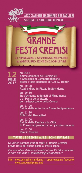 Il sabato c’è più gusto a stare in centro a San Donà. Tutti i sabato di luglio tornano le notti bianche con i negozi aperti anche di sera, spettacoli e concerti in Piazza Indipendenza. Per chi vuole godersi il fresco, fare shopping e ascoltare un po’ di musica buona. Per il buon bere invece c’è Venetino (vai alla pagina Facebook). Il locale è in prima fila per godersi questi eventi, a due passi da Piazza Indipendenza, e propone vini di qualità, come il Prosecco Docg, l’Amarone, il Valpolicella, e birre artigianali, da accompagnare con piatti freddi e caldi della tradizione veneta rivisitata. Dopo l’anteprima di sabato 4 luglio si comincia sabato 11 con la festa cremisi per il 50° anniversario del monumento al bersagliere e il 60° della associazione nazionale bersaglieri sezione di San Donà di Piave. Domenica 12 al mattino ci sarà anche la sfilata dei bersaglieri.