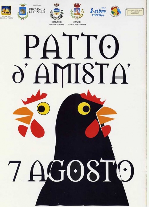 Nel medioevo San Donà e Musile di Piave erano due piccoli villaggi in mezzo ad una zona paludosa, molto legati alle loro chiese e ai loro santi patroni. Ci fu però una alluvione così disastrosa da deviare il corso del Piave e da costringere a ridefinire i confini tra il patriarcato di Aquileia e la diocesi di Torcello. La chiesa di San Donato, santo patrono di San Donà, si ritrovò sull’altro lato del fiume, nel territorio di Musile. Per risolvere la questione venne sancito un patto: lasciare il nome di San Donato all’attuale centro urbano di San Donà e festeggiare il santo patrono a Musile. In cambio San Donà si impegnava a offrire agli abitanti di Musile tutti gli anni il 7 agosto due capponi (gallos eviratos duos) vivi, pingui e ottimi.