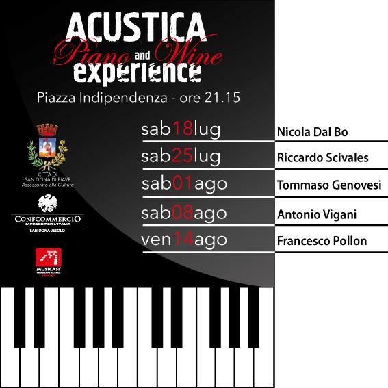 Continuano gli appuntamenti con la buona musica sotto le stelle in Piazza Indipendenza a San Donà. Sabato 25 c’è l’esibizione di pano jazz di Riccardo Scivales, uno dei più apprezzati trascrittori di brani pianistici jazz a livello internazionale, nonché autore di circa trecento puntate per i programmi Galleria del Jazz e Archivio del Jazz di RadioTre. Dal vivo eseguirà alcuni pezzi dai suoi CD "Quanah!" e "Suite degli Animali Fantastici", tra jazz e progressive. Il concerto è in Piazza Indipendenza, a due passi da Venetino (vai alla pagina Facebook). Prima o dopo il concerto puoi ristorarti dal caldo torrido con le specialità del locale: vini di qualità, come il Prosecco Doc e Docg, l’Amarone, il Valpolicella, e le birre artigianali, accompagnati da piatti freddi e caldi veneto revisited.