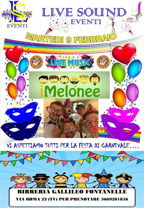 martedì 9 febbraio Festa di Carnevale con iMelonee