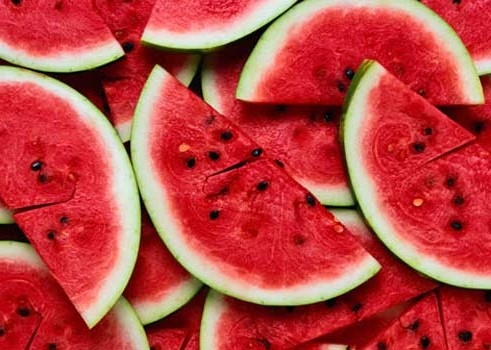 Ma naturalmente dell’anguria. Conosciuta anche come cocomero, l’anguria è una cucurbitacea originaria dell’africa tropicale. La sua storia è lunga quanto strana, venne scoperta dall’esploratore Livingston nel deserto del Kalahari anche se si hanno parecchie testimonianze di questo frutto nei reperti dell’antico Egitto. Parecchio diffusa e consumata in Cina e nell’estremo oriente, l’anguria è sempre stata associata alla purificazione ed al rinnovamento, forse grazie alla sua freschezza ed all’alta concentrazione di acqua e zucchero. Nel Botswana, è diffusa la credenza che la purificazione tramite le foglie di anguria sia una pratica necessaria al fine di ottenere un raccolto prospero. Tutti i beciuani maschi, infatti, sono tenuti, ogni inizio dell’anno, a purificarsi cospargendosi gli alluci e l’ombelico con il succo ottenuto dalle foglie dell’anguria conosciuta da questa tribù come lerotse. In seguito, anche gli altri membri di ogni famiglia dovranno subire lo stesso rituale per far sì che le coltivazioni crescano prospere e sufficienti per sfamare le bocche di tutto il clan. Fino a che questo processo di purificazione, quasi divinatorio, non è terminato nessuno può cibarsi dei frutti del nuovo raccolto.