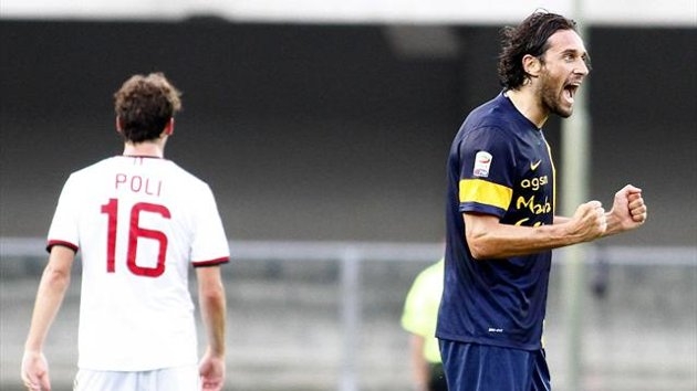 Verona – Milan 1-2 Poli. Ma troppo presto. La luce del Milan si spegne al ventesimo. Poi è tanta confusione, un Balotelli contro tutti con i tutti che battono sonoramente il solo Mario, tra le altre cose non nella sua giornata migliore e un obbrobrio dietro l’altro davanti ad Abbiati. Obbrobrio rossonero si intende. E un Verona che fa la partita, che gioca, che si fa apprezzare per la grazia degli esterni, Martinho e Jankovic e per la fame proverbiale di Luca Toni che infila due ‘pepperoni’ nella rete rossonera. Verona è ancora fatale.
