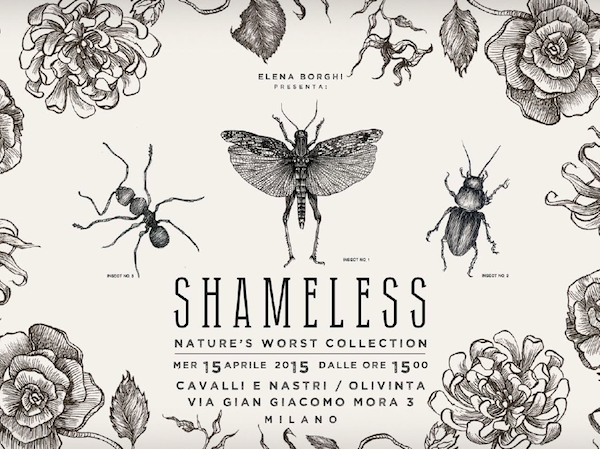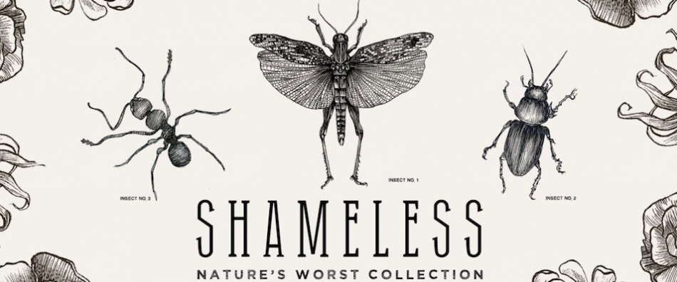 Dopo il successo della limited edition Inkanto, prosegue la collaborazione tra la scenografa e illustratrice Elena Borghi e la boutique di vintage e modernariato Cavalli e Nastri e Olivinta. Shameless Nature’s Worst Collection nasce dalla differente percezione del gusto e delle abitudini dell'uomo. Insetti, considerati disdicevoli e disgustosi se trovati in una pietanza occidentale, sono invece fonte proteica primaria in altre aree ad pianeta. In fondo come diceva Giulio Cesere “de gustibus non disputandum est”.