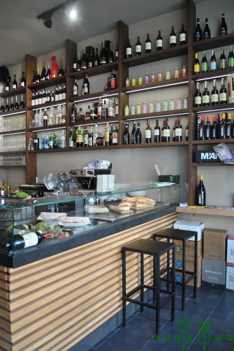 Più di un locale: un concept. Venetino San Donà è il primo locale di un format in franchising che vuole portare lo stile, l’accoglienza e le emozioni che sempre hanno contraddistinto le osterie venete e i bacari veneziani in tutto il mondo con un tocco di contemporaneità in più. L'obiettivo del progetto Venetino (vai al sito) è far conoscere e apprezzare le eccellenze del Veneto. Da bere presenta il Conegliano Valdobbiadene Prosecco Superiore, l’Amarone, il Valpolicella Classico Superiore e molte altre specialità enologiche della regione, oltre alle birre artigianali di San Gabriel e M’anis e ai succhi di frutta biologici e ai ricercati infusi di Bevande Futuriste. Da mangiare propone piatti da degustazione, sia freddi che caldi, preparati con prodotti selezionati di alta qualità come la sopressa vicentina Dop, il prosciutto Veneto Berico-Euganeo Dop, la casatella trevigiana Dop, il formaggio Asiago, il radicchio rosso di Treviso IGP, il miele delle Dolomiti bellunesi Dop, l’olio d’oliva del Lago di Garda. L’arredamento del locale è moderno e minimalista con il grande bancone centrale a dominare la scena, una bella bottigliera che si illumina di sera per mettere in risalto le delizie beverage e alcuni tavoli in legno dove accomodarsi. La posizione è strategica, a pochi passi dalla piazza di San Donà.